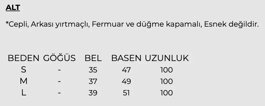 • Beden ölçüleri arasında 2-3 cm farklılık gösterebilir